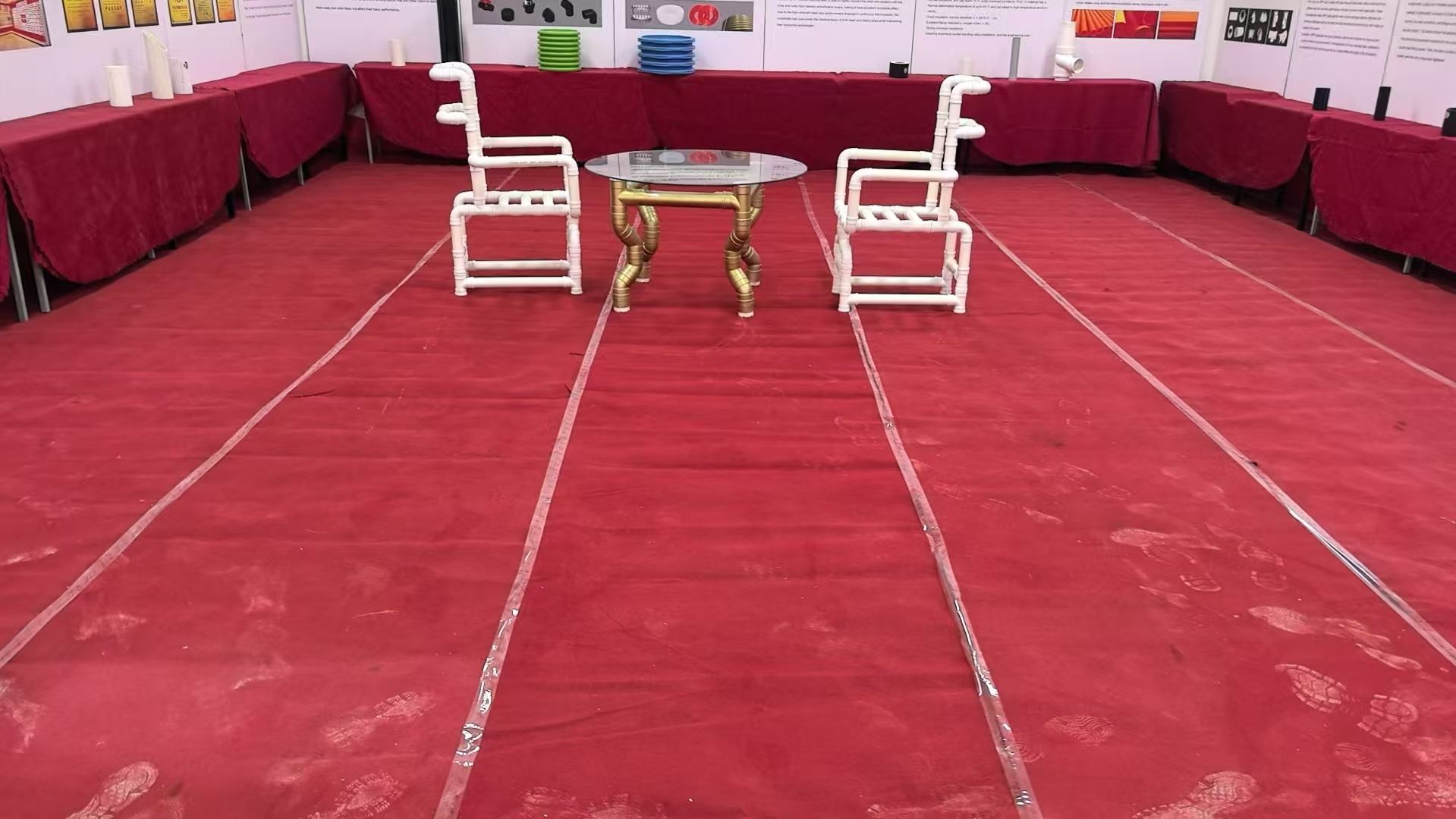 在展示區(qū)域,嶗山管業(yè)工作人員向來訪客商介紹了企業(yè)的生產(chǎn)布局、產(chǎn)品體系及技術優(yōu)勢,通過項目案例展板與實物展示,直觀呈現(xiàn)了管道產(chǎn)品在基建、民生領域的適配性?,F(xiàn)場陳列的管道制品及創(chuàng)意應用(如管道材質的展示家具),也讓客商對產(chǎn)品的實用性與拓展?jié)摿τ辛烁唧w的認知。